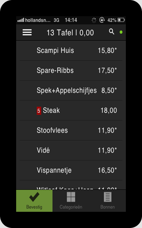 Op ieder gewenst moment van de dag kun je op ieder toestel de actuele en minimum voorraad van een product aanpassen. Op het moment de minimumvoorraad wordt bereikt zie je bij het betreffende product de actuele voorraad in het scherm. Vanaf dat moment wordt iedere verkoop van dat product real-time bijgehouden. Je voorkomt hiermee dat je ‘nee’ hoef te verkopen aan je gasten.